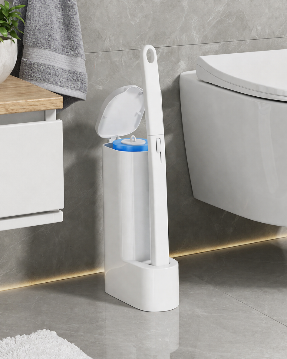 Ich heiße Monika, bin alleinerziehende Mutter von zwei Kindern und lege großen Wert auf Ordnung. Normale Toilettenbürsten haben sich für mich immer wenig hygienisch angefühlt – nass, im Behälter mit Schmutz. Deshalb habe ich nach einer besseren Lösung gesucht. Und so ist FreshBrush entstanden – eine Toilettenbürste mit austauschbaren Aufsätzen. Jedes Mal ein frischer Aufsatz, kein Kontakt mit Schmutz und kein stehendes Wasser. Nach dem Reinigen werfe ich den Aufsatz einfach weg und habe meine Ruhe. Das ist eine einfache Veränderung, die wirklich einen Unterschied macht – deshalb empfehle ich sie auch anderen.